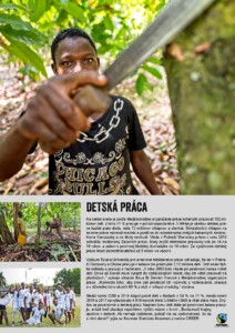 Milujete čokoládu? Chrupnutie tabuľky pri rozlomení a jemnú chuť na jazyku? Čokoláda má ale aj svoju temnú stranu. Stanislav Komínek a Lukáš Matěna vyrazili do západoafrického Pobrežia Slonoviny (Côte d’Ivoire), aby v krajine dodávajúcej 40% svetovej produkcie kakaa zdokumentovali podmienky pestovania. Cena za lacné kakao je šokujúca: pôvodná dažďový prales je prakticky vyrúbaný a pestovatelia žijú v chudobe. Veľkí výrobcovia čokolád Mars, Nestlé a Hershey sa pred takmer 20 rokmi zaviazali, že prestanú pri výrobe používať kakao zozbieranej deťmi. Väčšina dnes vyrobenej čokolády však stále začína detskou prácou.