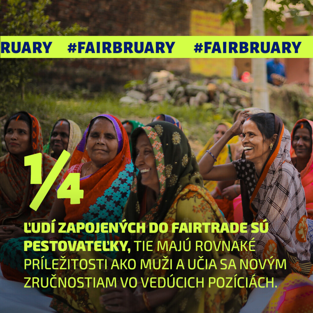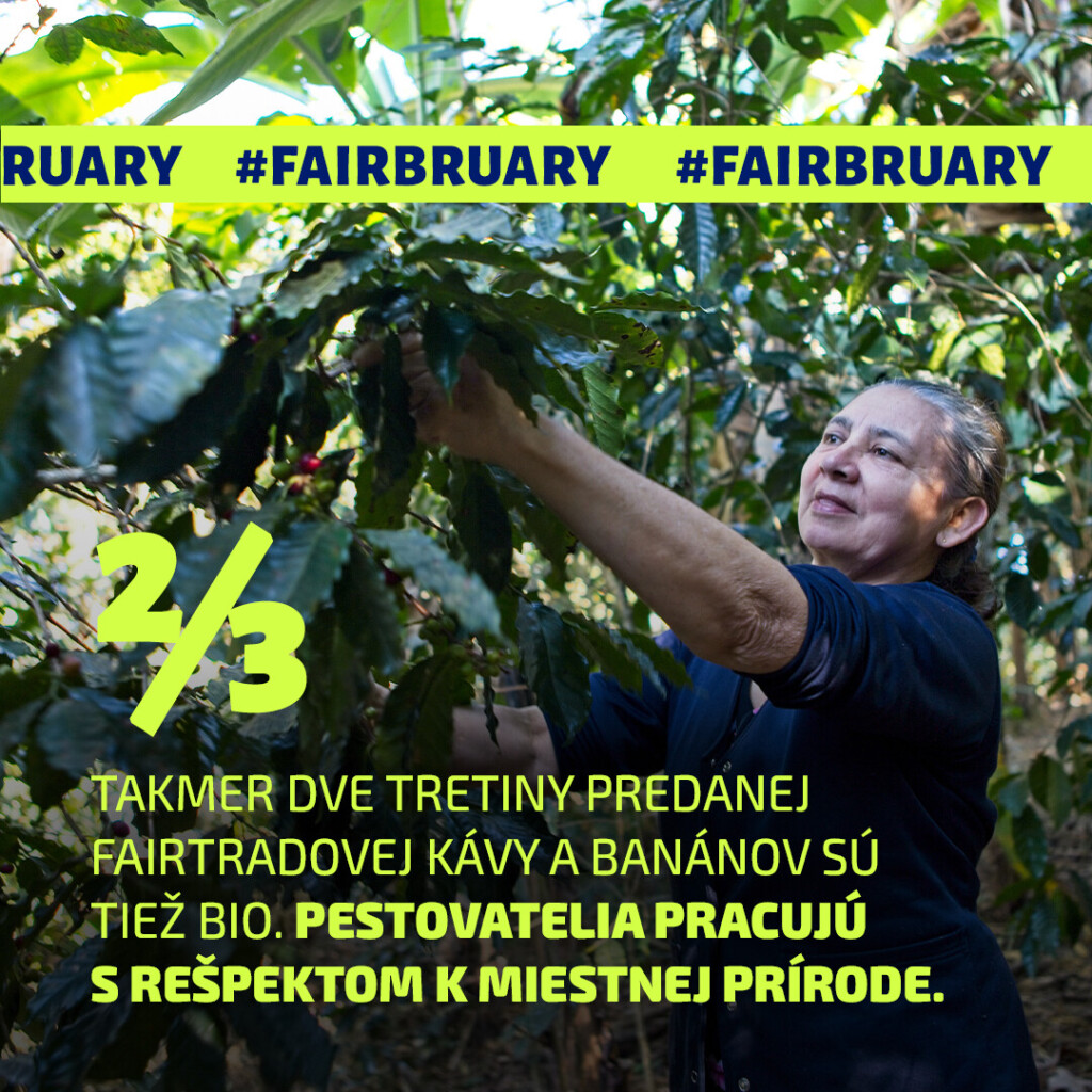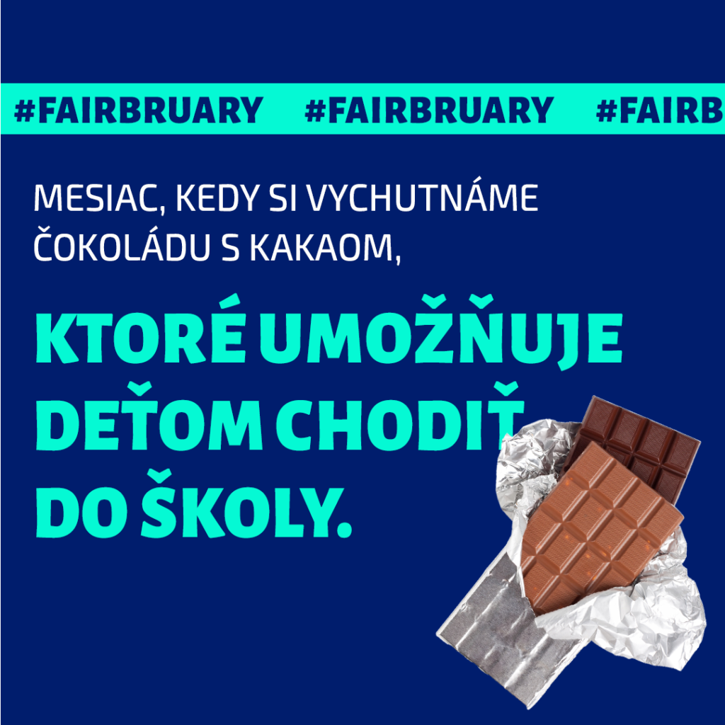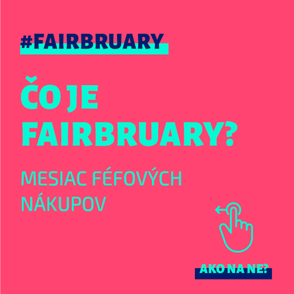 Mesiac, počas ktorého Vás chceme motivovať, aby ste sa zastavili, zamysleli a skúsili urobiť malý krok smerom k férovejšej a udržateľnejšej budúcnosti. Využite Fairbruary na objavovanie ďalších fairtradových produktov. Fairtradovú čokoládu alebo kávu asi poznáte. Skúste ochutnať aj fairtradové banány, darujte fairtradové rezané kvety alebo vyskúšajte textil z fairtradovej bavlny. So známkou FAIRTRADE možno nakúpiť aj mnoho ďalších produktov; cieľom je, aby ľudia, ktorí pre nás tieto produkty pestujú, dostali za svoju prácu spravodlivejšie zaplatené.