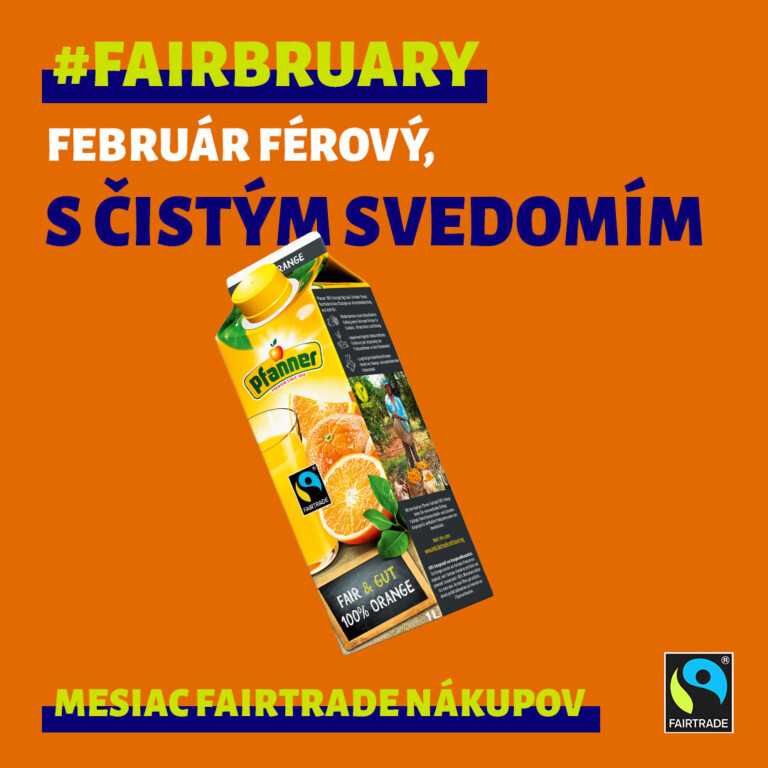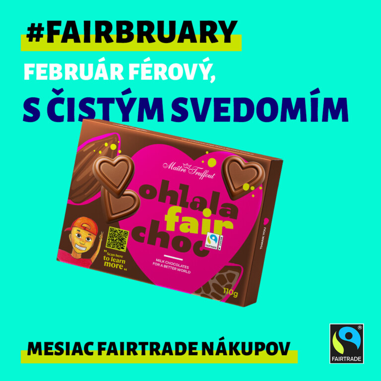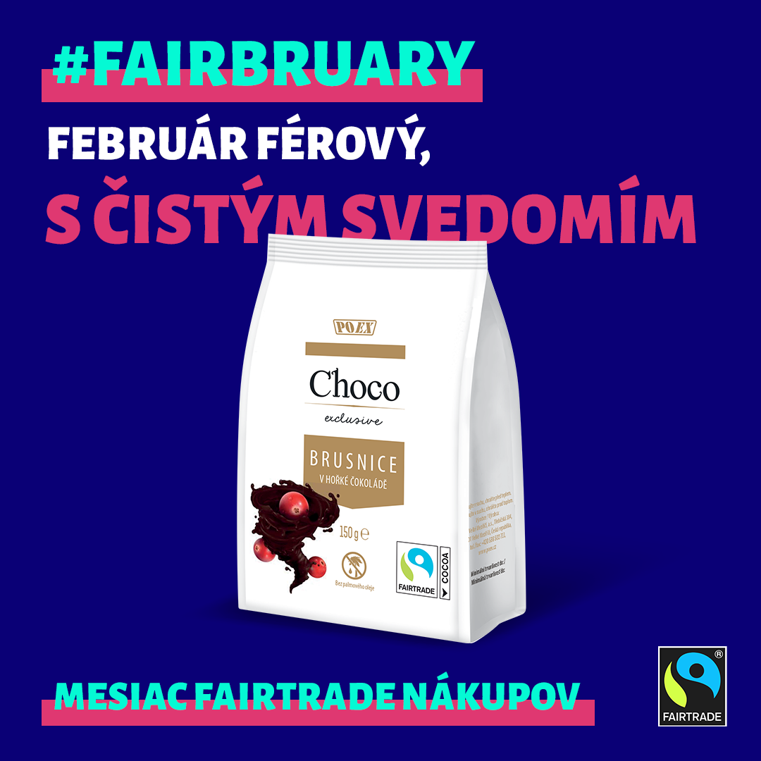 Mesiac, počas ktorého Vás chceme motivovať, aby ste sa zastavili, zamysleli a skúsili urobiť malý krok smerom k férovejšej a udržateľnejšej budúcnosti. Využite Fairbruary na objavovanie ďalších fairtradových produktov. Fairtradovú čokoládu alebo kávu asi poznáte. Skúste ochutnať aj fairtradové banány, darujte fairtradové rezané kvety alebo vyskúšajte textil z fairtradovej bavlny. So známkou FAIRTRADE možno nakúpiť aj mnoho ďalších produktov; cieľom je, aby ľudia, ktorí pre nás tieto produkty pestujú, dostali za svoju prácu spravodlivejšie zaplatené.