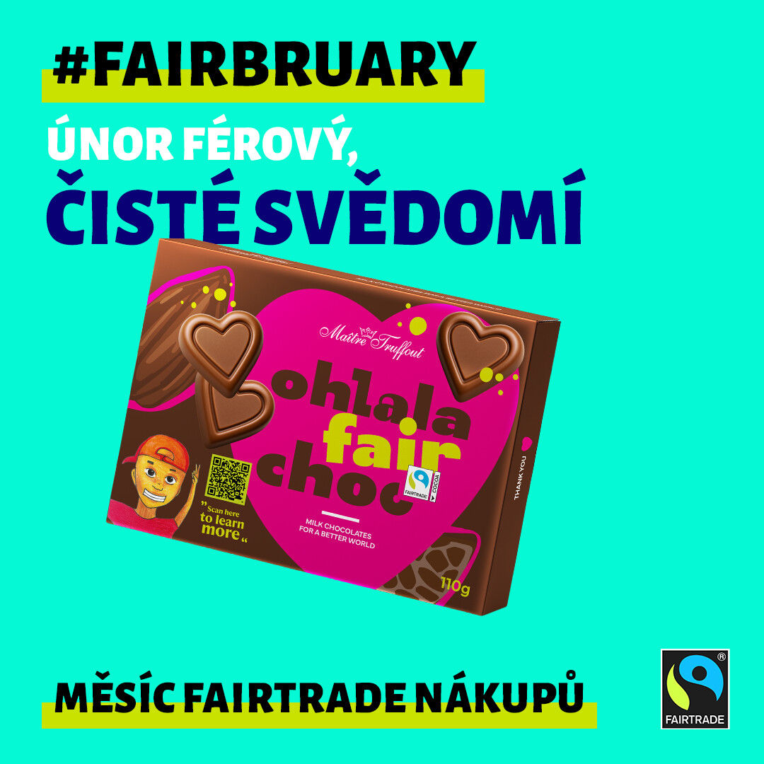 Měsíc, během kterého Vás chceme motivovat, abyste se zastavili, zamysleli a zkusili udělat malý krok směrem k férovější a udržitelnější budoucnosti. Využijte Fairbruary k objevování dalších fairtradových produktů. Fairtradovou čokoládu nebo kávu asi znáte. Zkuste ochutnat i fairtradové banány, darujte fairtradové řezané květiny nebo vyzkoušejte textil z fairtradové bavlny. Se známkou FAIRTRADE lze zakoupit i mnoho dalších produktů; cílem je, aby lidé, kteří pro nás tyto produkty pěstují, dostali za svou práci spravedlivěji zaplaceno.