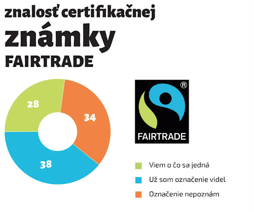 V marci tohto roku sme si nechali od spoločnosti Median spracovať prieskum, v ktorom sme zisťovali znalosť certifikácie Fairtrade a známky FAIRTRADE. Pokiaľ ide o povedomie o známke FAIRTRADE, podľa prieskumu ju pozná 66 % slovenských spotrebiteľov. Z toho 28 % respondentov uviedlo, že presne vie, čo toto označenie znamená, a podiel respondentov, ktorí známku aspoň videli, sa zvýšil o 4 % na 38 %.