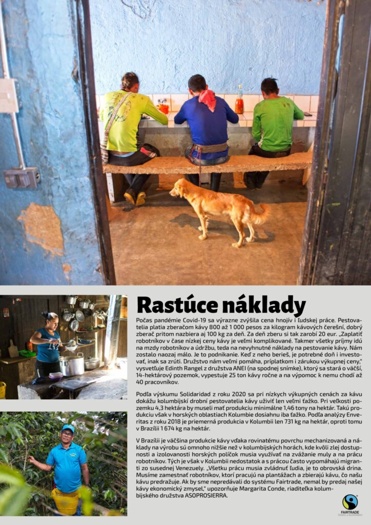 Káva je súčasťou života väčšiny z nás. Milióny ľudí na celom svete začínajú svoj deň kávou, stretávajú sa pri káve, dobíjajú si energiu kávou alebo jednoducho relaxujú pri šálke kávy. Zároveň od kávy závisí život 125 miliónov ľudí na celom svete. Žiaľ, často sa pestovaním tejto plodiny nedokážu slušne uživiť. Ako sa živia pestovatelia kávy? Stanislav Komínek a Lukáš Matěna vycestovali do Kolumbie v Južnej Amerike, aby zdokumentovali podmienky pestovania v krajine, ktorá je druhým najväčším producentom kávy Arabica na svete. Ľudia, ktorí vyrábajú našu šálku kávy, bojujú s nízkymi výkupnými cenami, rastúcimi nákladmi na jej pestovanie a neistotou dobrej úrody. K tomu sa pridávajú dôsledky klimatických zmien, ktoré by mali do roku 2050 znížiť plochu vhodnú na pestovanie kávy arabica na polovicu. Približne 25 miliónov drobných pestovateľov kávy musí konať rýchlo – prispôsobiť svoju pôdu klimatickým zmenám. Ani to však nemusí stačiť a mnohí sa budú musieť pestovania kávy vzdať kvôli cenovej a klimatickej kríze.